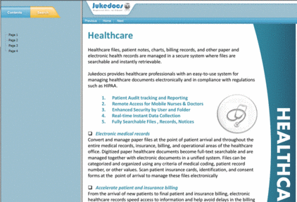 Users can integrate the content that they manage from any other software that they utilize, allowing them to store once and then share with anyone inside or outside the firewall. Jukedocs retains a complete history of any file or document, through our version control and tracking which saves users a significant amount of time and effort locating their content.